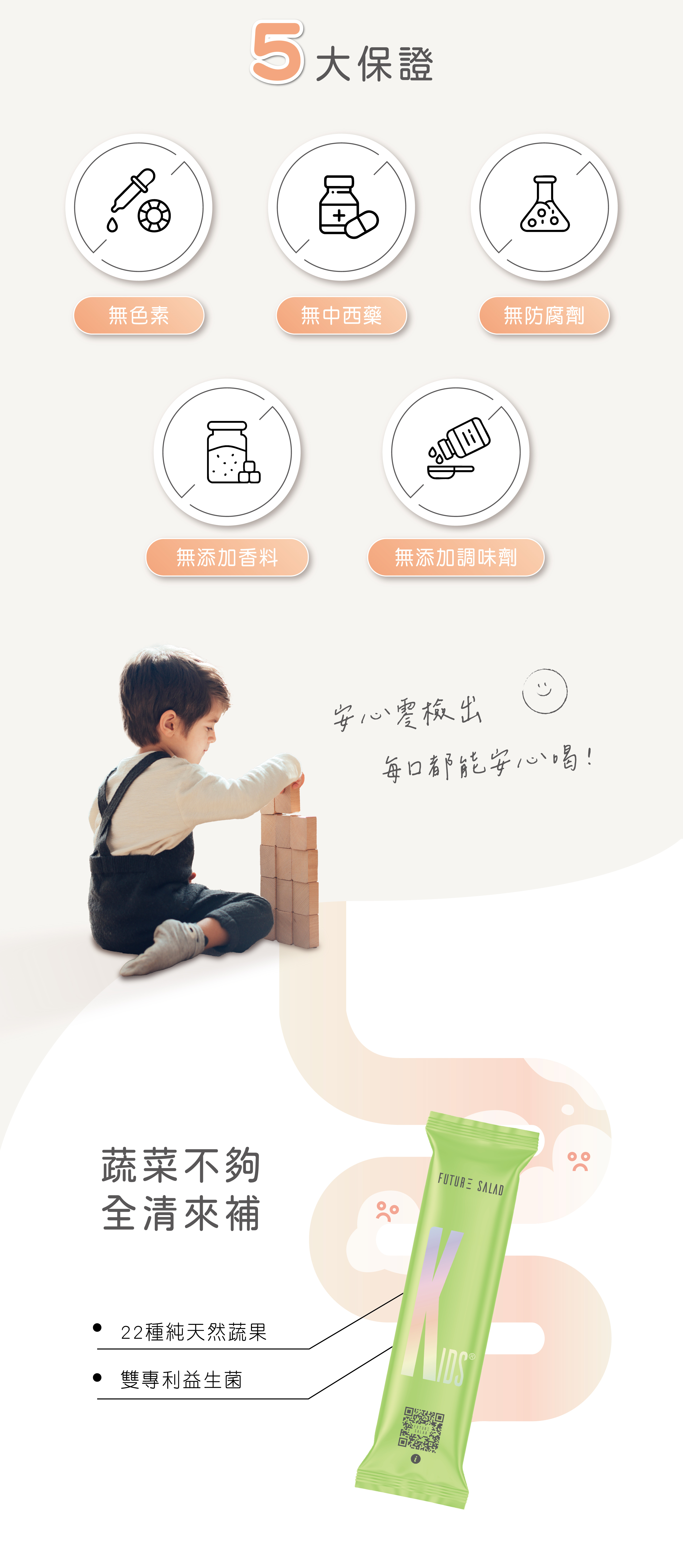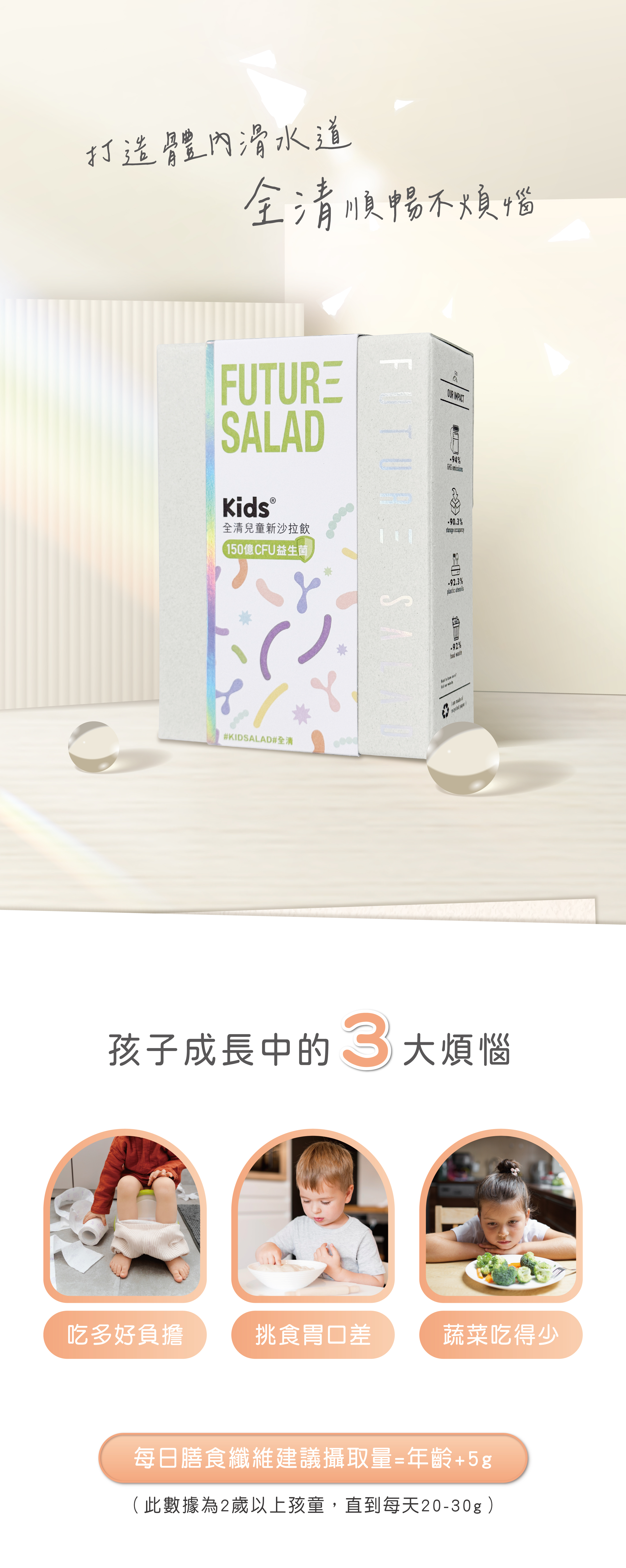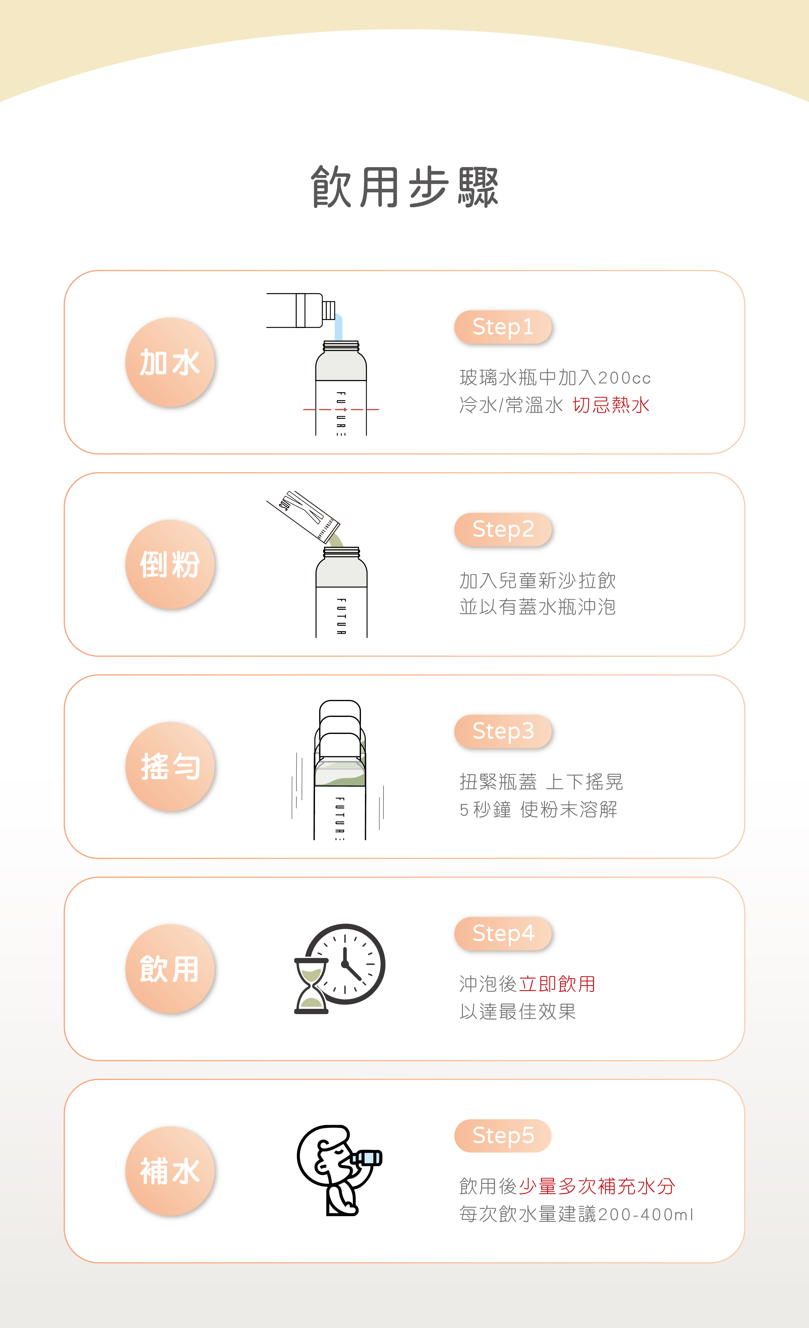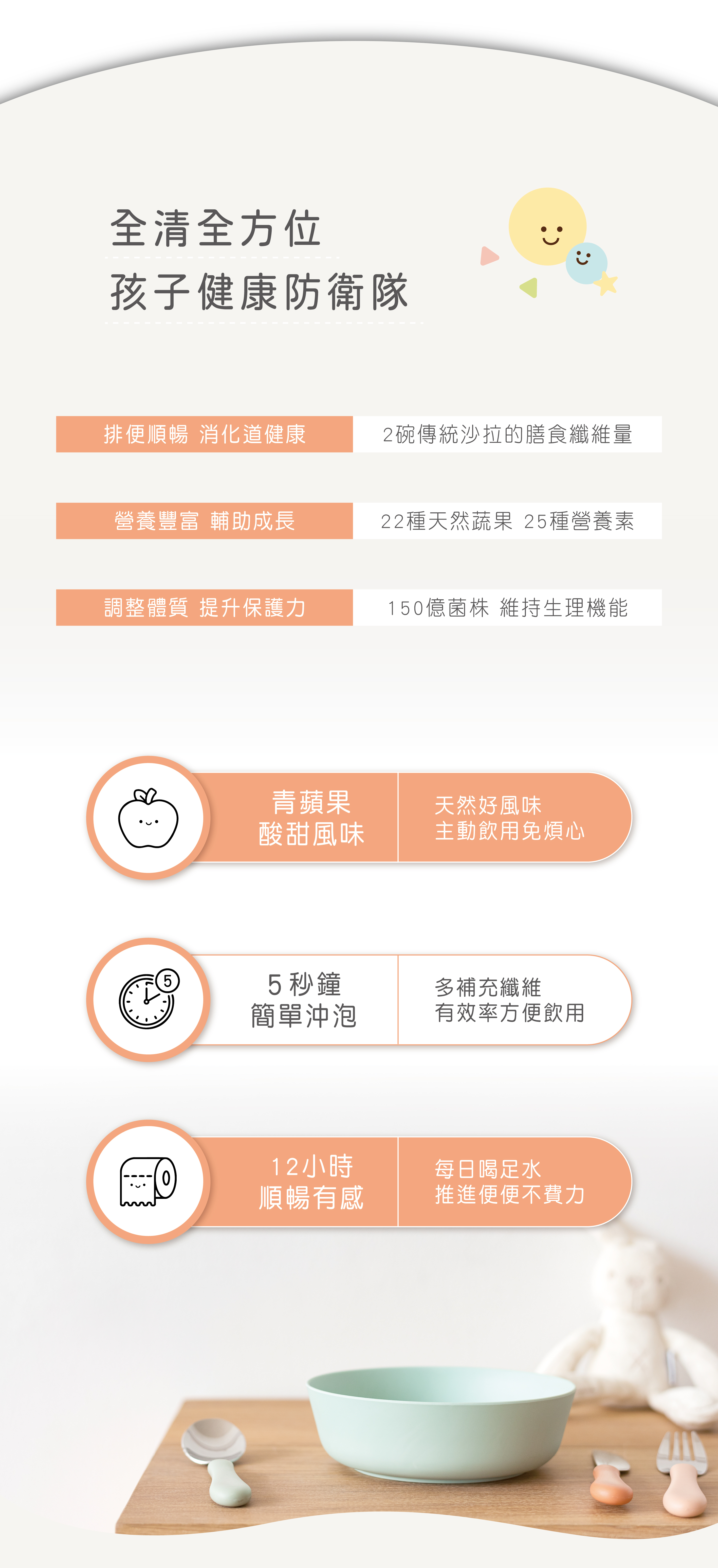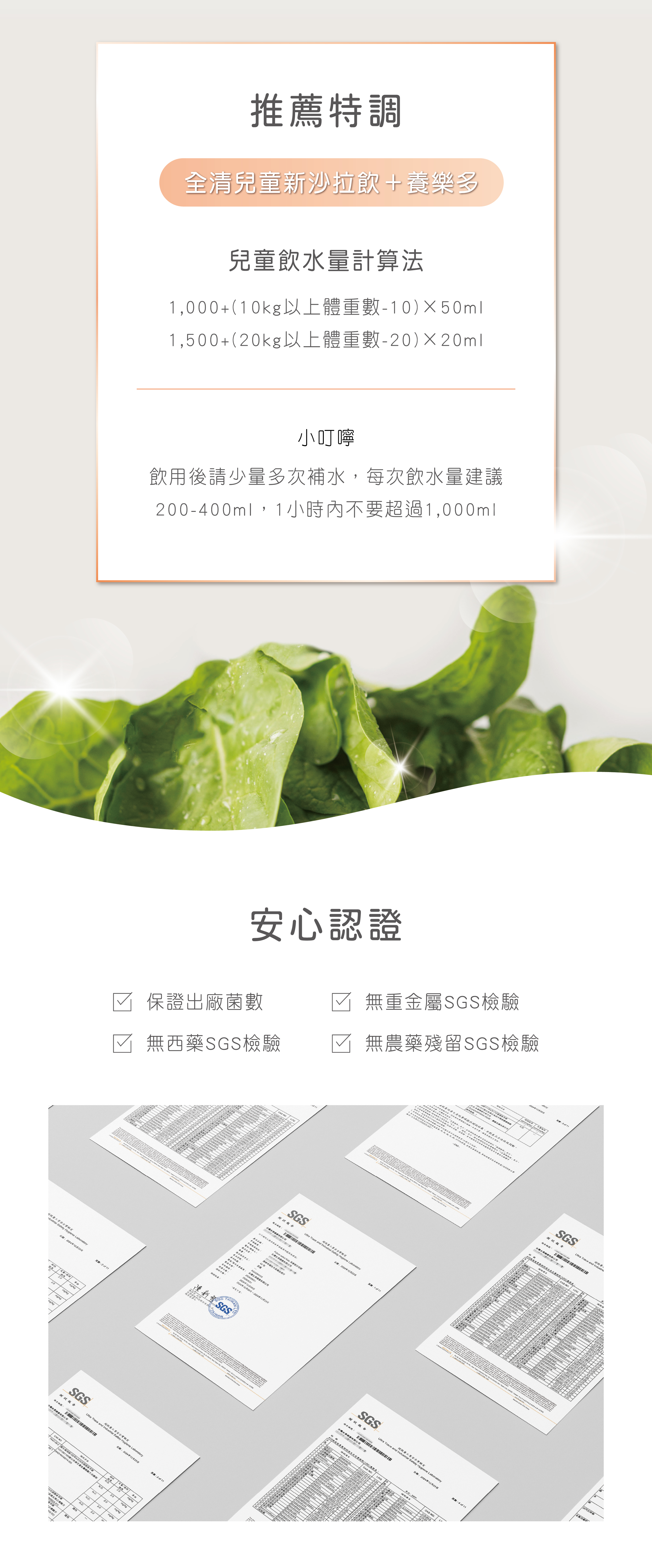 商品內容物:全清兒童新沙拉飲 30條(不含玻璃水瓶)