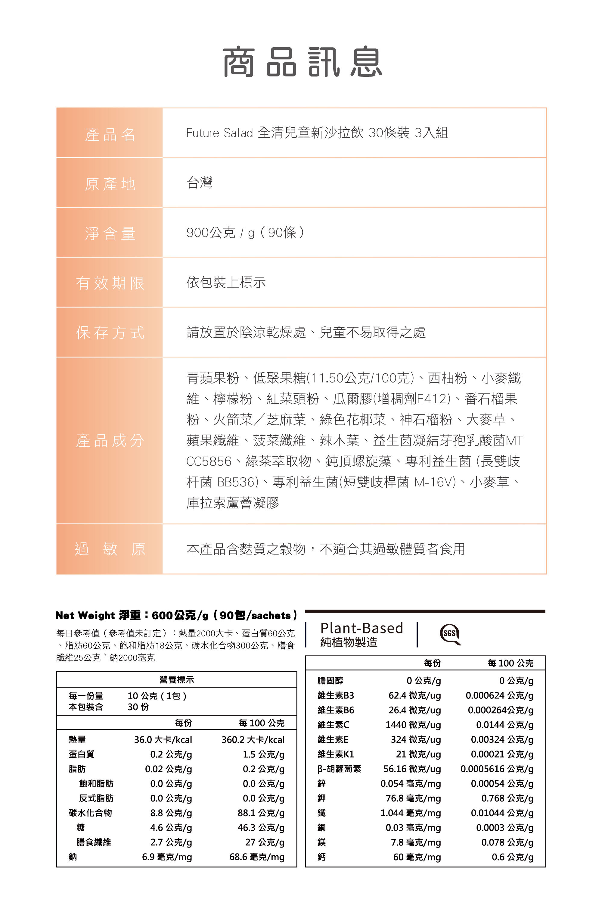 商品內容物:全清兒童新沙拉飲 30條裝3入組,共90條(不含玻璃水瓶)